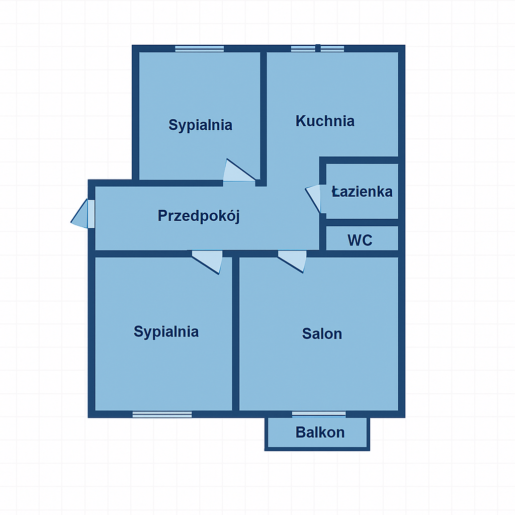 Funkcjonalny układ – 3 niezależne pokoje i osobna kuchnia zapewniają komfortowe warunki dla rodziny lub kilku najemców.